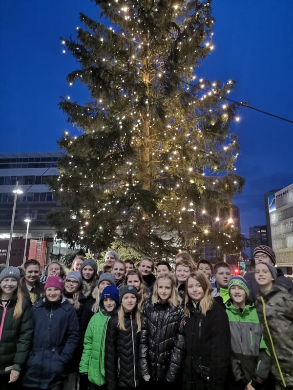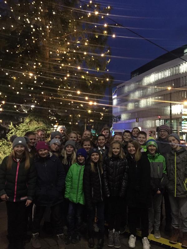 Bei der Erstbeleuchtung des Landhaus-Christbaumes in St. Pölten, der von der Gemeinde Ertl gespendet wurde, war auch der Schulchor unter der Leitung von Karin Schenkermayr vertreten. Ein eigens für die Schule vorgesehener Bus fuhr mit den Chormitgliedern, Schülerinnen und Schülern, einigen Eltern und Lehrerinnen in die Landeshauptstadt.