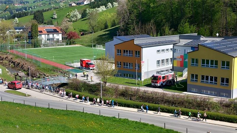 Bei einer großen Feuerwehrübung am Freitag dem 24. April wurde die gesamte Schule evakuiert. Übungsannahme war ein Brand im Chemiesaal. Einige Personen wurden im Schulgebäude vermisst und über die Drehleiter bzw. über das Flachdach gerettet.